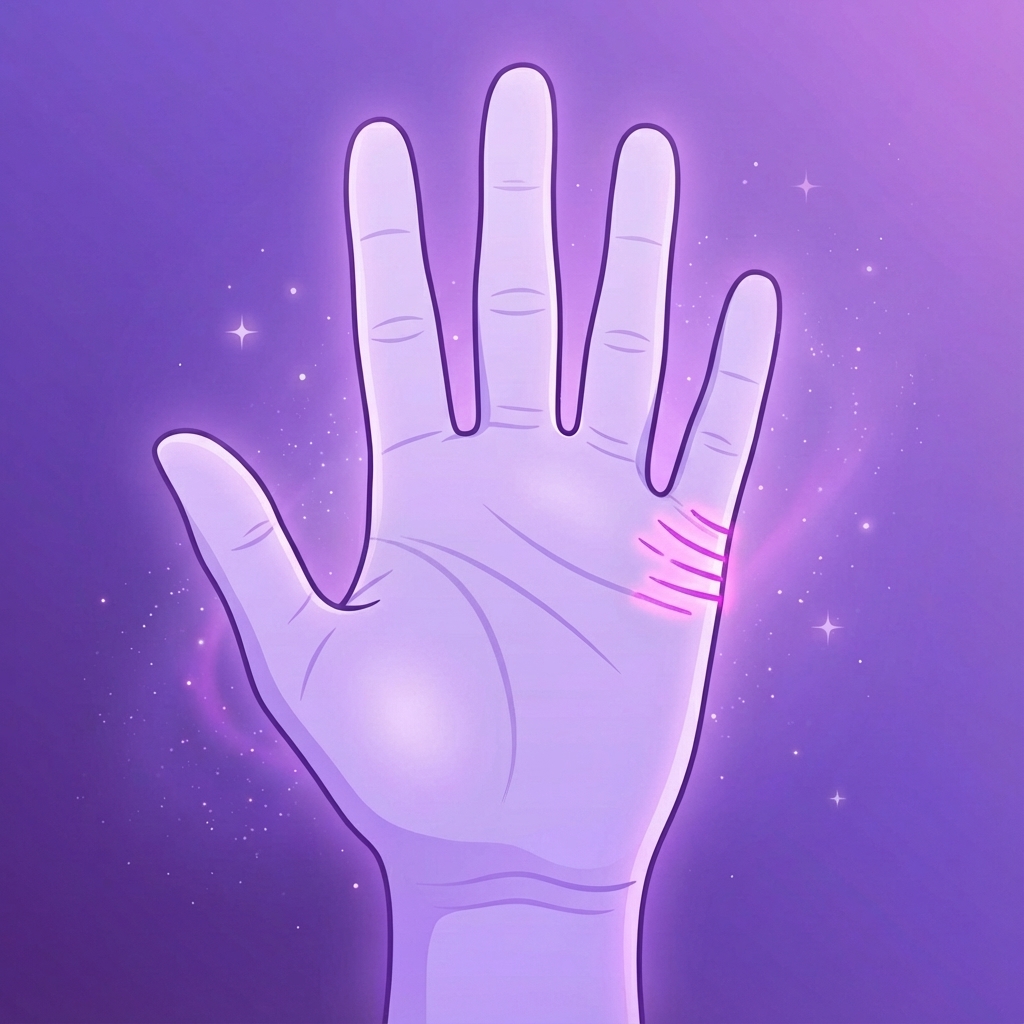 結婚線は、小指の付け根(水星丘)と感情線の間にあります。 手の側面から見ると見つけやすいです。複数ある場合は、最も長くはっきりした線が主要な結婚線です。